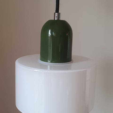 Messing og creme farvet glaskuppel.
