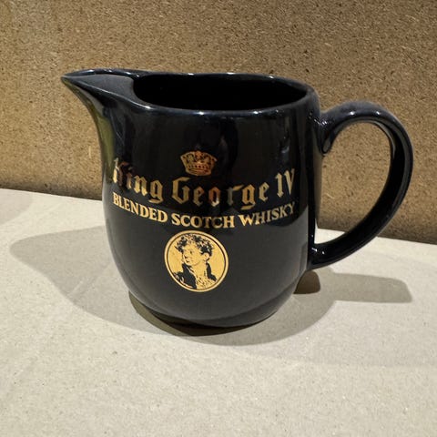 Gamle kander fra forskellige barer. De blev brugt til vand, så man ved siden af sin whisky fik en kande vand. Drak man Four Roses Bourbon, fik man således vand i en Four Roses Bourbon kande. Kom gerne med et bud. Jeg sælger for min bedstefar. De er i flot stand, alle kander. Sælges samlet.
