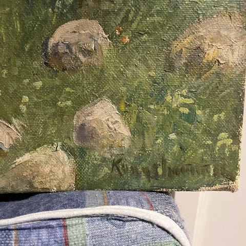 Stort flot oliemaleri uden titel fra ca. 1980’erne.