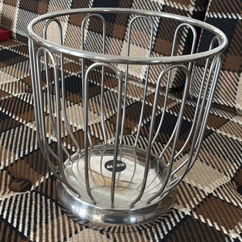 Har få brugsspor i bunden, men de ses ikke når der ligger et par stykker frugt, men den kan også sagtens stå fin uden frugt.