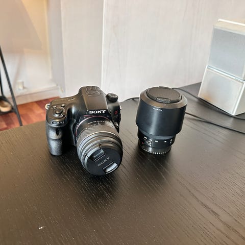 Sælger mit Sony Alpha A58 DSLR i fin stand – perfekt til både begyndere og hobbyfotografer.
