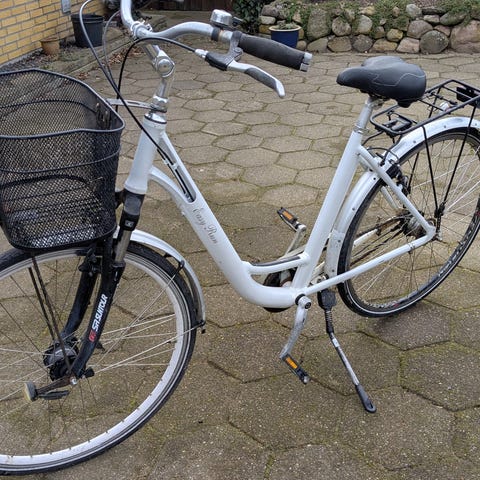 Sølvfarvet med 7 gear som trænger til justering, stel str 52 cm, hjul str 28"/700c, står i Herfølge