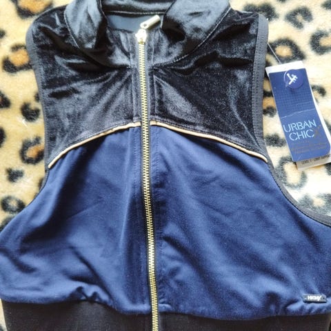 Kort top i lyseblå farve, elastisk stof og fortykket belt