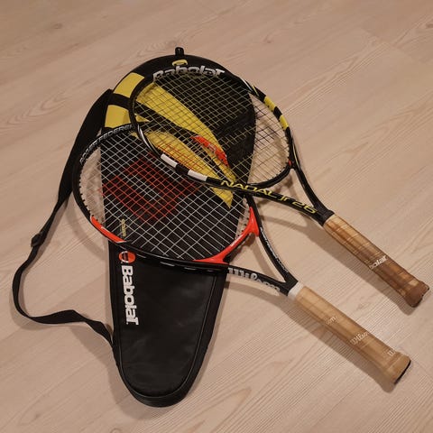 Adidas Tennis Ketsjer i træ med brun farve. Velegnet til tennisentusiaster, der ønsker en klassisk ketsjer med retrodesign. kr 200 samt Wilson ketcher med etui kr 150 begge 2 for kr 300