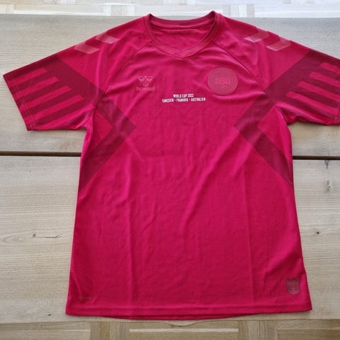 Dansk landsholdstrøje fra 2022. Størrelse LARGE men fitter nok bedst en MEDIUM da den måler 71x53.