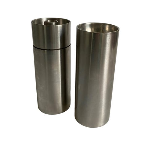 Arne Jacobsens elegante og stilrene peberkværn og saltstrøer (udgået) fra cylinda-line er lavet i rustfrit stål med et flot, satinpoleret ydre.