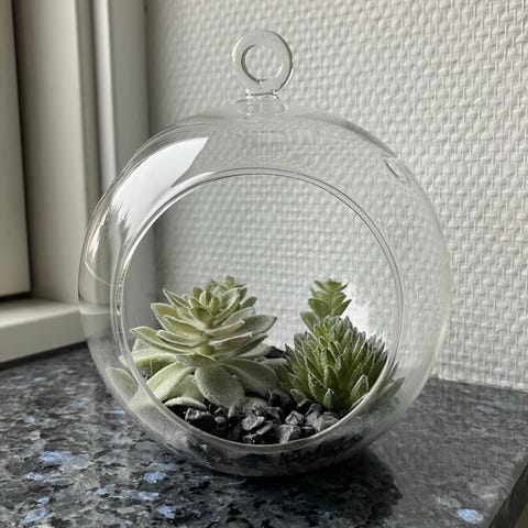 Fin "bronze"-ophæng til fx til en lille sukkulent. Kan både stå og hænge.