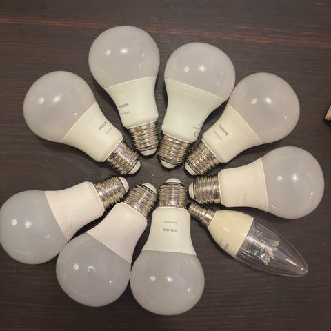 Vi har 1 stk. ny Philips sceneswitch LED pære E27 8W svarende til 60W glødepære, 806lm / 2700K.