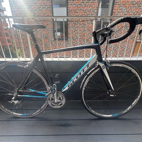 Scott Contessa Speedster 15 cykel med shimano 105 geargruppe og kranksæt. Tektro bremser. Monteret med lækre carbonhjul fra Prime (RR 38) og GP 5000 25 mm dæk.