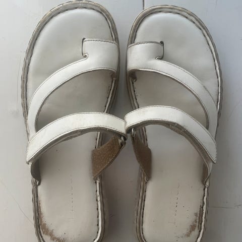 Pæne sandaler i hvid og beige med hvid blomst i størrelse 23