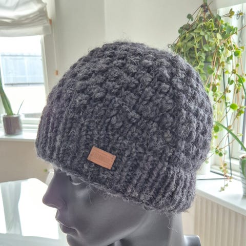 Hue, Moss Copenhagen hue, MSCH / Moss Copenhagen, str. One size, Mørkegrå, Merino uld, Arylic, Ubrugt, MSCH / Moss Copenhagen mørkegrå hue