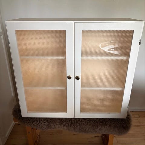 Fint overskab - der er vindusfolie på ruderne som kan tages af så det bliver gennemsigtigt.