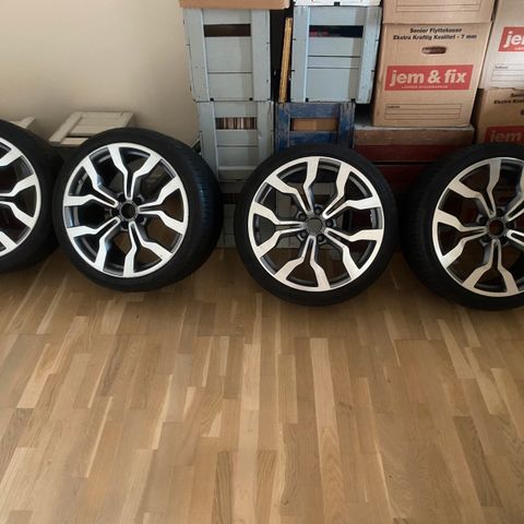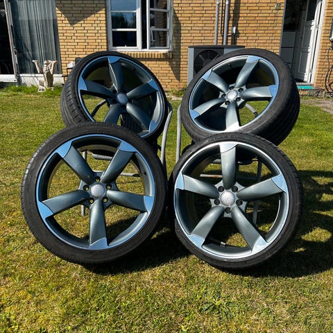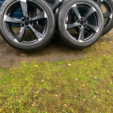 Dæk størrelse 255/35/20 med masser af mønster. Der er få kanstenskys på 2 af fælgene