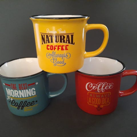 5 ens krus Tognana, 5 flotte Italienske Krus, gul, blå og grøn SAMLET PriS