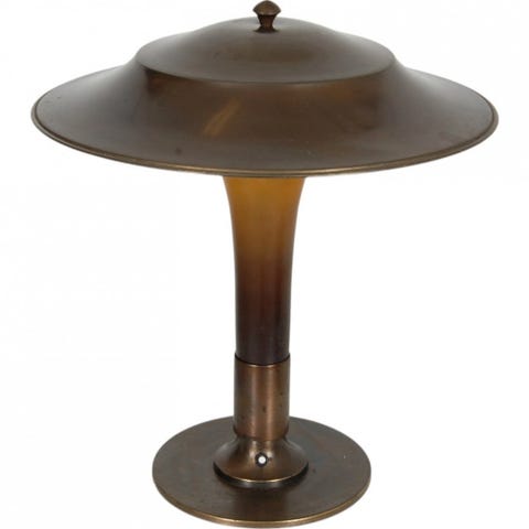 Fog & Mørup fakkel lampe, designet i 1930'erne. Lampens fod og øverste skærm er udført i messing med patineret overflade, og søjlen er udført i glas. Lampen er fra 1940'erne og fremstår intakt med flot patineret overflade. Lampen er fuldt funktionsdygtig. •Designer: Fog & Mørup •Producent: Fog & Mørup •Produktions år: 1940'erne •Model: Torch lampe •Mål: Højde 42 / Diameter 38 Cm •Materialer: Messing og glas •Stand: Brugt Fog & Mørup Torch lampe fra 1940'erne.