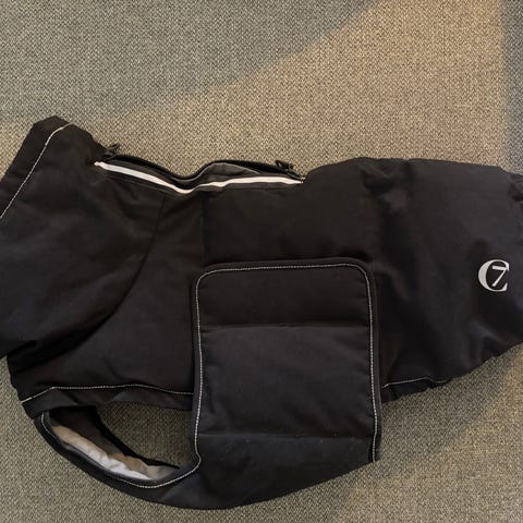 Købt til Chihuahua, alt for lille (min hund vejer 3,4 kg) Størrelse M: Bryst 38 cm, ryg 26 cm. Brugt en gang, nypris 349,- Virkelig varm og praktisk og nem at give på. Sender gerne