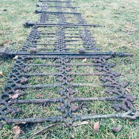 Ca 3 meter robiniehegn plus en rest på knap 1 meter. Højde er 120 cm.