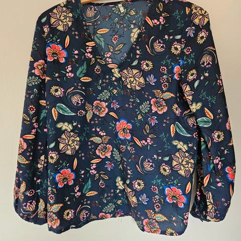 Bluse med super flot fugle- og blomstermønster
