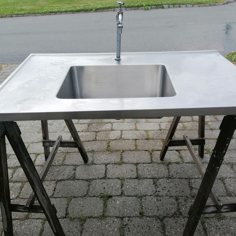 Rustfri bordplade med 2 vaske, 2,4 x 60 og 2,5 tyk