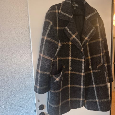 Med flot, skrå lukning og velourbånd på ærmerne.