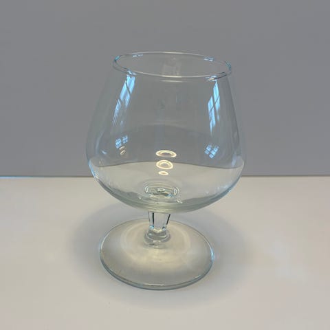 Cognacglas med motiv af ulv og træer, ca 9 cm højt