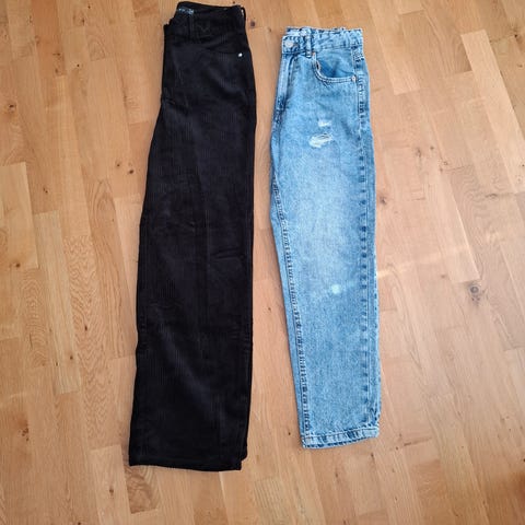 Sæt med 2 bomuld bukser med lidt elastane. Turkis er lidt mere grøn den blå.