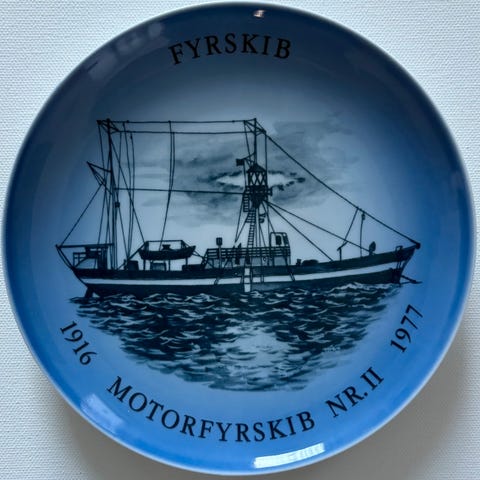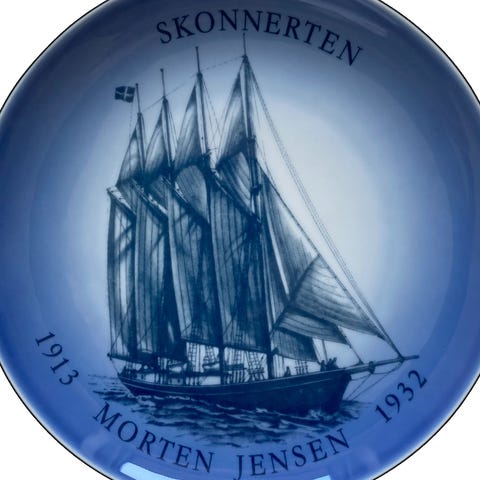 Bing & Grøndahl udgav gennem en årrække en række fine blå platter med danske skibe gennem tiderne - kaldet Skibsplatterne.
