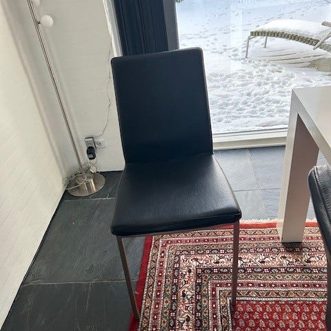 Boconcept spisebord stole 6. Stk. med sort læder betræk og stål ben, betrækket kan tages af og udskiftes. Hvis man ønsker et andet.