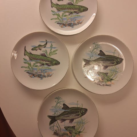 Japanske frokosttallerkner med fiskemotiv