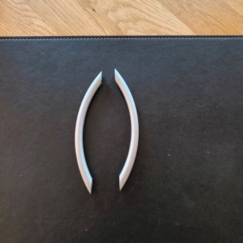 Greb til skabslåger og skuffer., Gedigen udførelse i rustfri stål men kraftige rosetter.