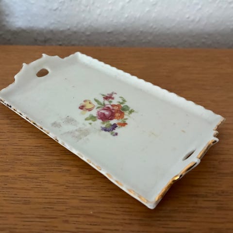 Gl brunt porcelænsfad blomster