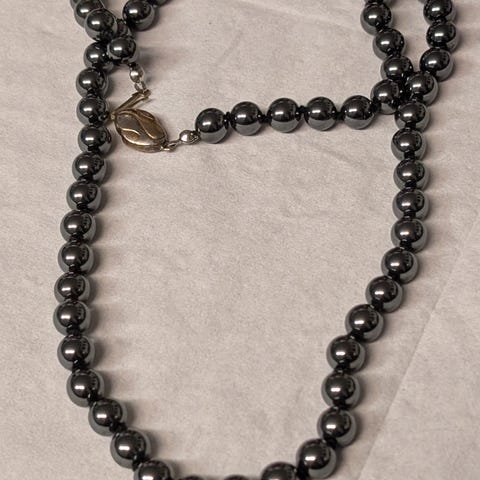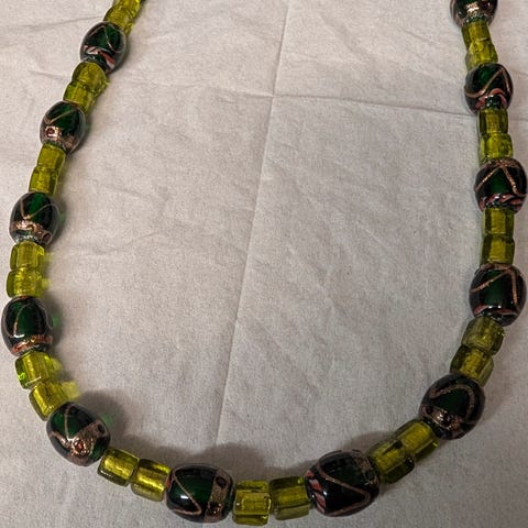 Halskæde af grønne perler. Kende ikke materiale. L 35 cm