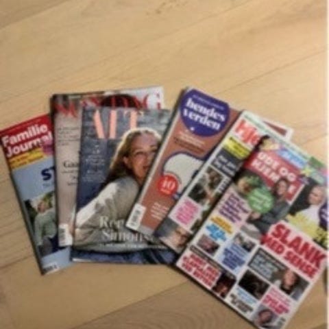 Lækre livsstilsmagasiner, der fokuserer på indretning, design og shopping til boligen, lidt der er fokuseret på mode og skønhed og lidt have og madmagasiner. En blandet stak af nogle af Danmarks største og mest læste boligmagasiner, 10 kr pr blad, nypris i snit 70 kr stk.
