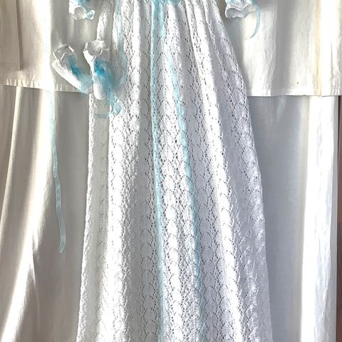 Dåbskjole, Dåbskjole Håndstrikket økologisk hør, Katheaven - Bornholmsk Solskinsøstrik, str. 68, Håndstrikkede dåbskjoler i økologisk hørgarn (den på billedet :-) eller bomuld :-)