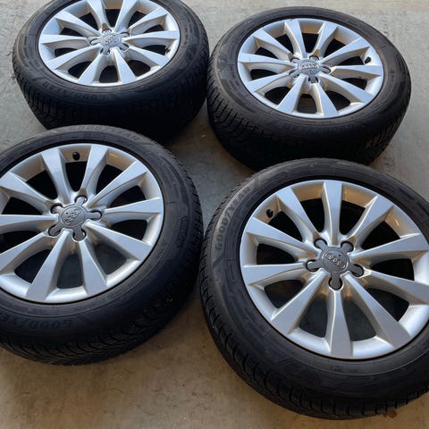 Originale Audi fælge i god stand med Good Year ultra grip vinterdæk monteret - stadig med en god del mønster.