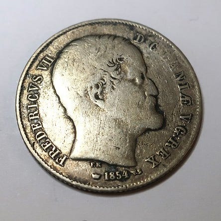 Danmark. Frederik VII. Sølv ½ rigsdaler 1854 VS