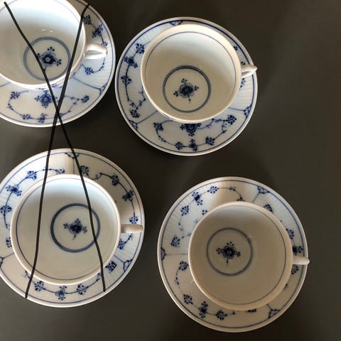Royal Copenhagen. Musselmalet riflet. Mini kop. Model 2308.