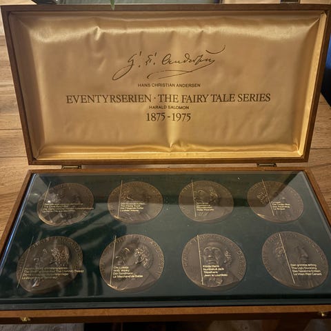 H. C. Andersen eventyrserie i bronze. 8 forskellige styk. Diameter 70 mm. I original æske.