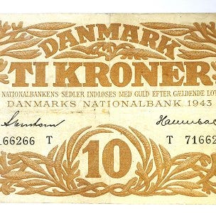 Danmark. Pengeseddel 10 kr. 1948 r. Kvalitet 1+