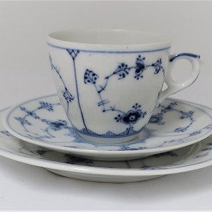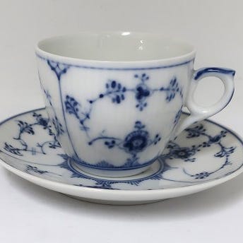 Royal Copenhagen. Musselmalet riflet. Stor kaffekop. Model 7