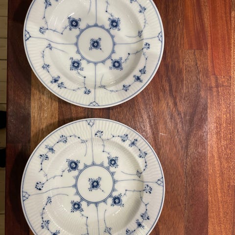 Royal Copenhagen. Musselmalet, riflet. Tallerken. Model 177. Diameter 22,5 cm. (2 sortering)