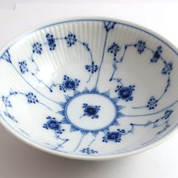 Royal Copenhagen. Musselmalet, riflet. Firkantet skål. Model
