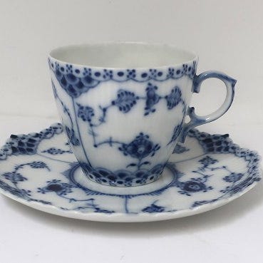 Royal Copenhagen. Musselmalet, halvblonde. Bouillonkop. Mode