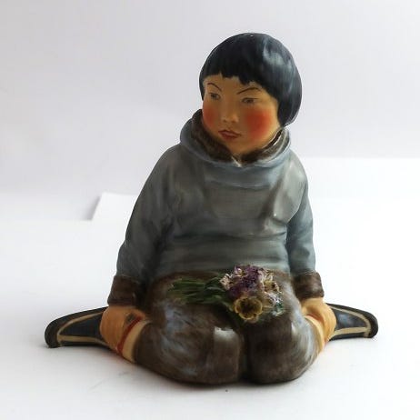 Royal Copenhagen. Grønlænderdreng. Model 12419. Højde 9,5 cm. (1 sortering). Der er små afslag på blomster. (se foto)