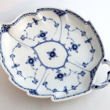 Royal Copenhagen. Musselmalet Halvblonde. Firkantet bakke. M