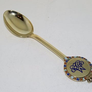 Michelsen. Sølv minde ske (830). Frederik d. 8's Kroning 29 januar 1906. Design Einar Ren. Med gravering.
