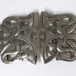 Albeck, København. Sølv bæltespænde med rav (826). Længde 79 mm