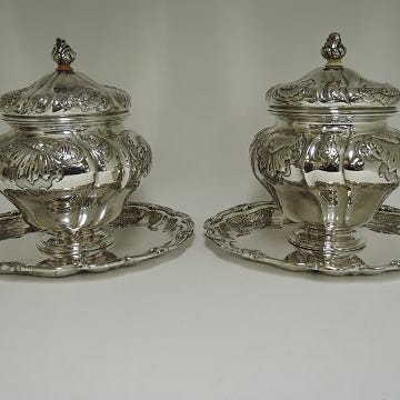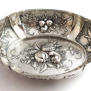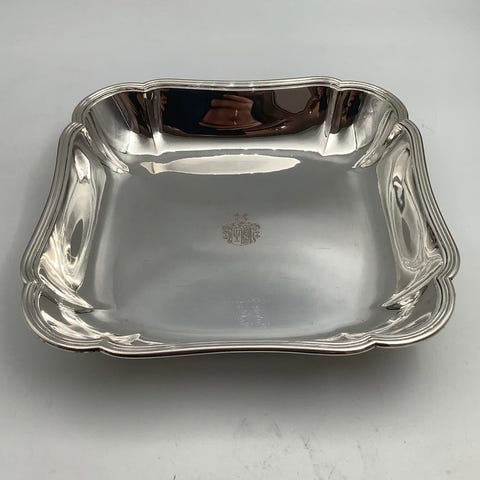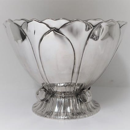 Dragsted. Isterninge glasskål med sølvlåg. Højde 13 cm. Diameter 17 cm. Produceret 1951.