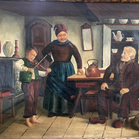 Julius Exner 1825-1910. Tegning. Kone med sovende barn. Signeret Exner 1873. (Fra Anders Jørgens stue ved Arresøen). Mål 35*24 cm.