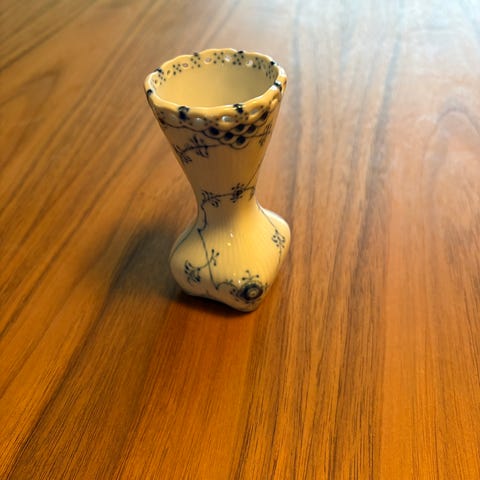 Royal Copenhagen. Musselmalet, helblonde. Vase. Model 1161. Højde 8 cm. (1 sortering).